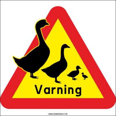 Skylt “Varning” Gäss är skylten för dig som har gäss eller känner till en speciell plats där gäss brukar passera över en väg.